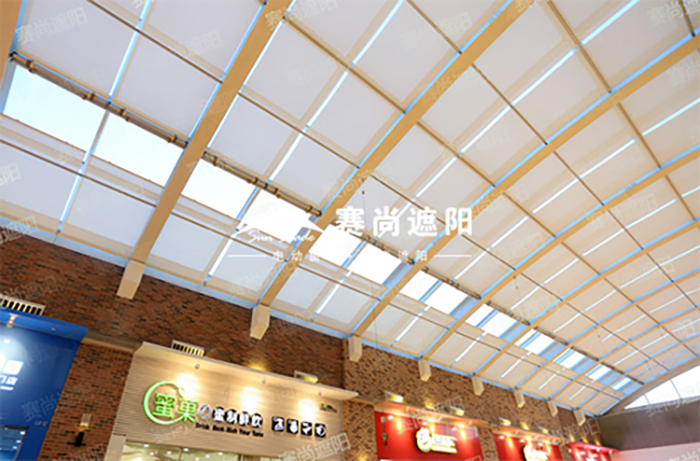 FSS電動天棚簾是電動天棚簾中應用最廣泛的一類,主要用于玻璃采光頂或天頂的遮陽,屬于卷軸式電動天棚簾,打開時呈平整緊張鋪開,收起時卷曲到一端圓管上,整體效果大方簡潔美觀,具有良好的遮陽效果,為室內提供適宜的光線環境。