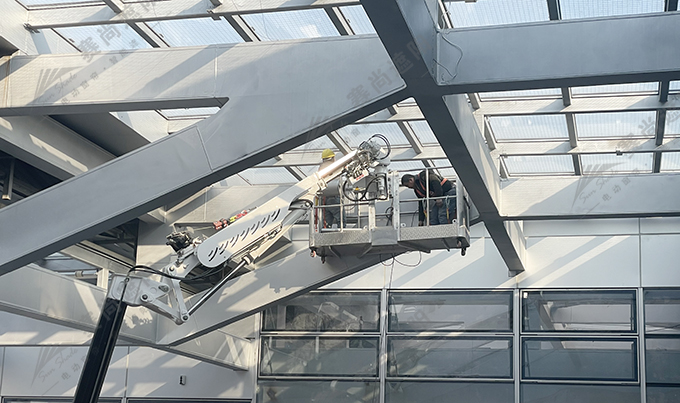 現在越來越多的高空作業都選用蜘蛛車來協助工作,因為它比普通腳手架更智能化,更方便移動,此次采光頂天棚簾的安裝全依靠這臺智能化的高空作業車配合我們工作,正因為有了它才使我們的施工進度更有效率,是現在高空作業中比較流行的一種施工工具,更是一種發展趨勢,同時也是整個項目安裝的一個特色。