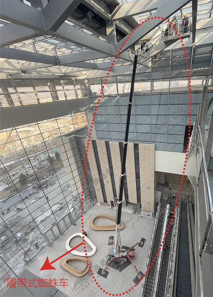 由此可見,我們可以看到在安裝采光頂天棚簾過程中,為了此項目能盡快順利完工,項目上用到的履帶式蜘蛛車協助工作,為什么不用腳手架呢,下面就跟隨小編來了解一下它的工作原理及優勢: