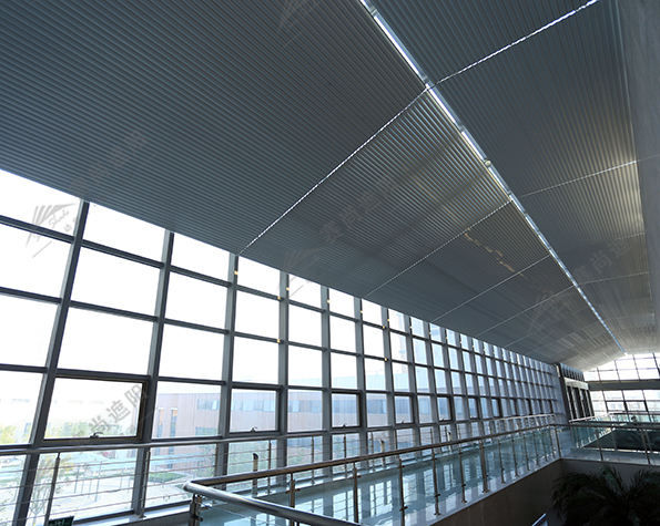 此項目采光頂遮陽采用的是88E歐式百葉;是一款極具現代感的戶外遮陽產品,產品外形簡潔,與采光頂和鋁合金玻璃幕墻配合,能充分體現現代建筑風格。該產品能滿足水平、 垂直和傾斜面建筑結構的遮陽要求, 集百葉和天棚簾的功能于一體,具有調光、遮陽、保溫、隔熱等多種功能。葉片在0-90度的范圍內任意調整角度。不管安裝面積多大,經過合理分開,所有葉片都能同步運行,整體性極強,時間久仍能保持常新狀態,因為其葉片成流線型狀態,不沾灰塵免于清洗。在現代建筑外遮陽中遮陽效果極佳,在綠色、節能建筑物中應用較廣,同時也能連接智能遮陽控制系統系統,是一款很不錯的外遮陽產品。