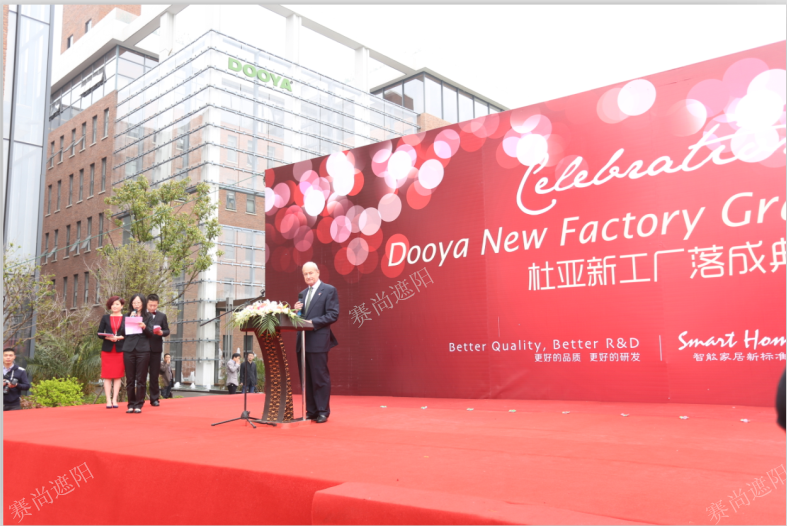3月28日,寧波杜亞機電技術有限公司(以下簡稱杜亞)新工廠落成慶典在寧波隆重舉行。作為全球知名的智能家居與窗簾電機生產廠商,杜亞的此次新工廠落成慶典格外引人注目,大約3600人參加了此次活動,天津市賽尚遮陽科技有限公司總經理金鑫冶先生也受邀參加了此次慶典活動。