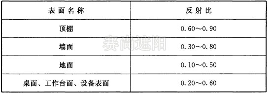 辦公、圖書館、學(xué)校等建筑的房間,其室內(nèi)各表面的反射比宜符合表5.0.4的規(guī)定。