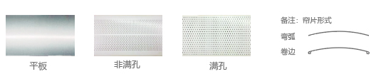 室內電動百葉簾選擇葉片規格較多,包括:15mm、25mm、35mm、50mm、60mm、80mm,葉片規格及形式選擇,將影響遮陽效果、室內舒適度、室內視野、室內光線等因素。葉片也分為平板及沖孔形式。推薦采用沖孔形式,不僅可起到遮陽降低室內空調能耗的作用,也可增加室內透景效果。
