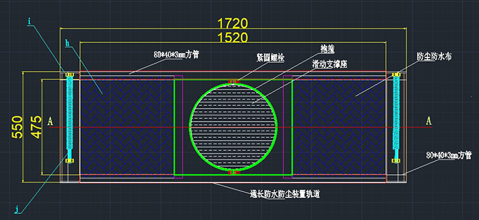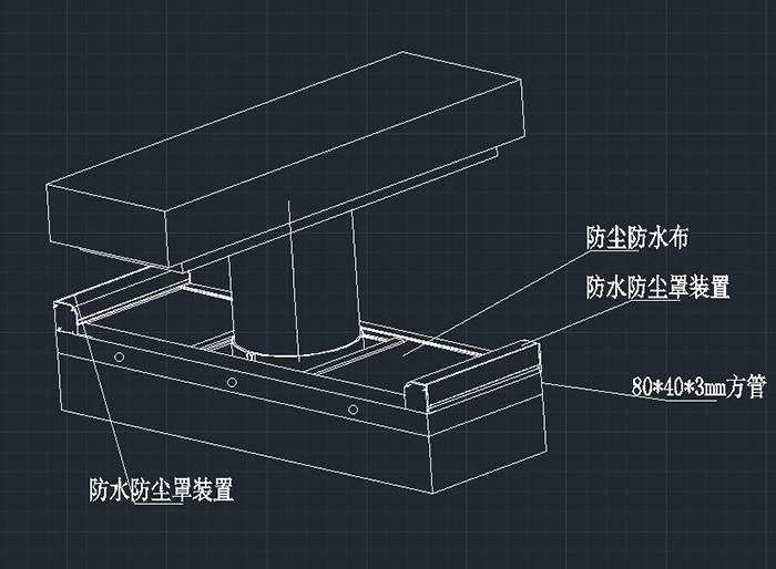 3.固定防塵罩軌道并測量防塵罩盒預留尺寸及抱箍的安裝設計。