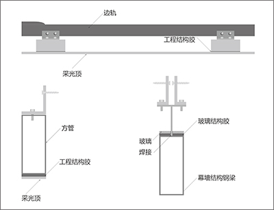 3)最后在鋁方管周圍注滿結構膠,完全固定在玻璃頂上,之后在打上安裝碼,方便與遮陽簾固定在一起。