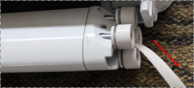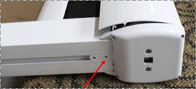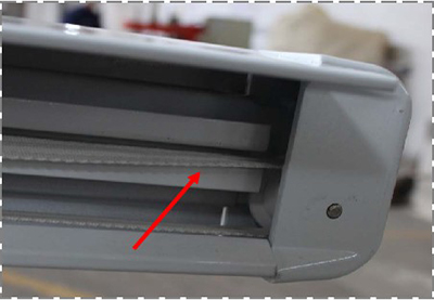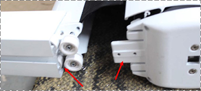 (1)通電將面料展出約30Cm,將前通滑輪對準導軌槽,推入導軌;