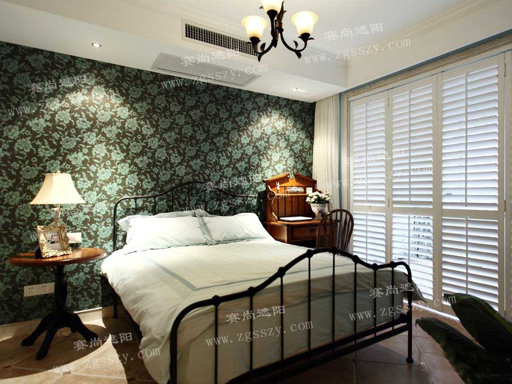四、臥室臥室電動百葉窗簾一般以溫馨宜人為格調,以整面墻、落地式、開合型等款式的布簾為主,顏色、花樣要與墻壁、床上用品相協調,可設計成窗紗和布簾相結合的雙層式窗簾,不過要注意布簾與窗紗的顏色不能有很大的反差。