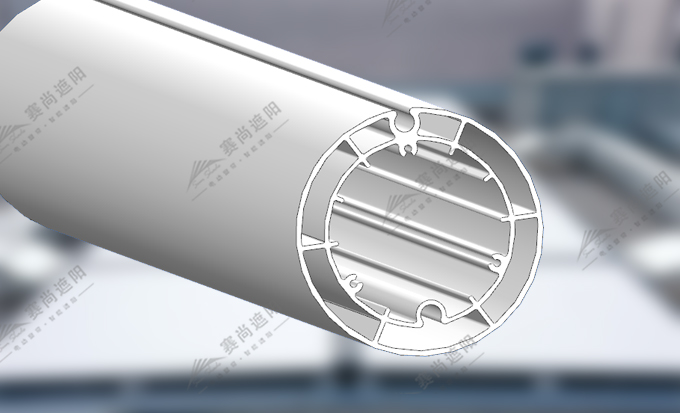 面料收回時,電機卷布使氣壓桿壓縮蓄力,直到面料完全收回,氣壓桿長度最短,蓄力最大,當面料展開時,靠氣彈簧釋放蓄力,前通帶著面料展開,直到全部展開為止。